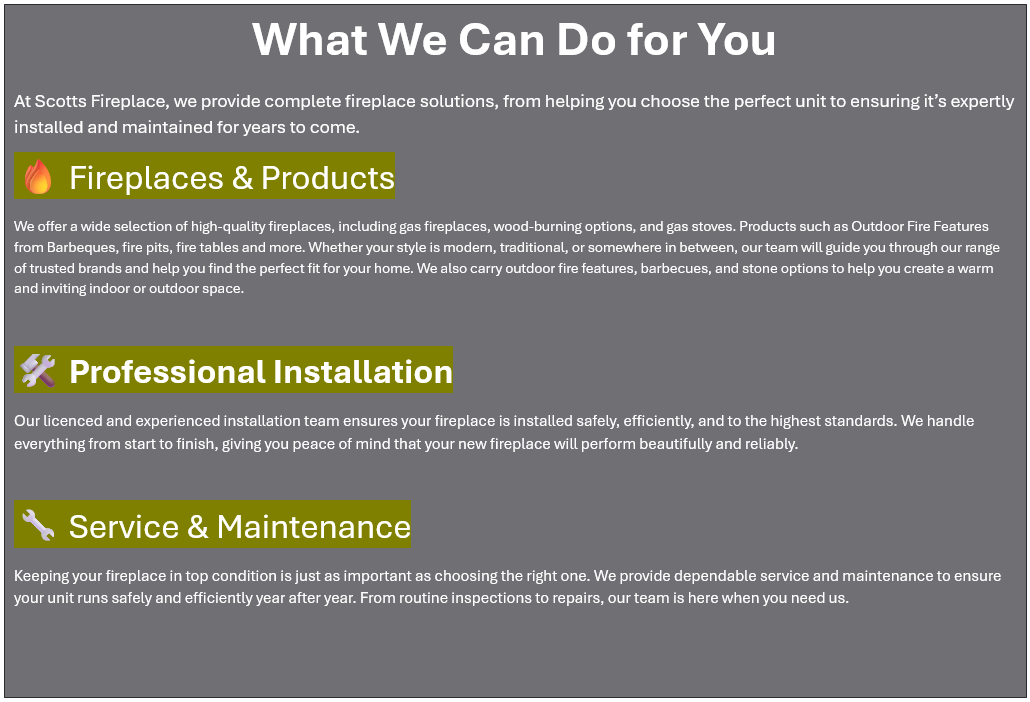 WELCOME TO SCOTTS FIREPLACE